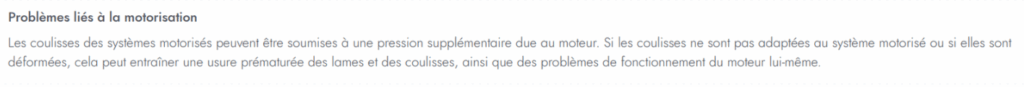 - Un bruit inhabituel : grincements ou ronronnements signalent souvent un souci au niveau de l’axe d’enroulement ou du coffre.